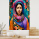 Image d'une belle princesse asiatique avec hijab et robe orangée fleurie. Il s'agit d'une oeuvre d'art générée par l'IA avec un thème floral.