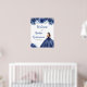 Ce panneau d'accueil Quinceanera présente une belle princesse dans une robe bleu marine à motifs floraux. C'est parfait pour une fête d'anniversaire de Quinceanera.