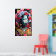 Poster princesse face bleue avec fleurs dans les cheveux