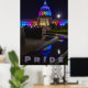 Une photographie de nuit capture l'hôtel de ville de San Francisco baigné de couleurs vives de l'arc-en-ciel. Le dôme emblématique, orné du drapeau de la fierté LGBTQ+, se détache du ciel sombre. La façade de l'immeuble est éclairée d'un spectre de couleurs, créant un spectacle éblouissant. Au premier plan, une piscine réfléchissante reflète les lumières colorées, ajoutant une touche sereine et éthérée à la scène.