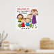Bienvenue à vos élèves en classe avec cette affiche colorée, brillante, amusante figurine enfants et femme enseignant avec plusieurs enfants et l'enseignant avec des zones que vous pouvez facilement customiser avec votre nom et classe que ce soit la maternelle, première année, deuxième, troisième, etc. !