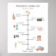 Éléments de mariage colorés à l'aquarelle rustique, programme chronologique. L'affiche présente des illustrations mignonnes de bagues, d'église, d'appareil photo, de bouteille avec verre, de service de table, de notes de musique, de gâteau, de bouquet et de voiture rétro. Le modèle comporte deux lignes pour la date et les noms.