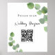 Un arrière - plan blanc chic. Décoré avec des eucalyptus vert aquarellé, sprigs. Personnalisez et ajoutez votre propre code QR à votre site Web avec le programme de mariage.