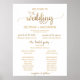 Ce modèle d'affiche de programme de mariage simple calligraphié en or est parfait pour un mariage chic. Le design romantique classique présente une typographie en faux feuilletage or et un cœur doré charmant. Incluez le nom de la mariée et du marié, la date et le lieu du mariage, les noms des parents et du cortège nuptial.