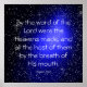 Par la parole de l'Éternel furent faits les cieux; et tous les hôtes d'eux par le souffle de Sa bouche. Psaume 33:6