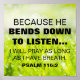 verset biblique du Psaume 116:2 "Parce qu'il se penche pour écouter...Je prierai aussi longtemps que je respire."