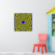 Illusion optique : Entre autres, le design pointu et les couleurs bleu et jaune qui s'échangent donnent à cette image un puissant mouvement pulsateur.