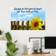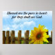 Un tournesol solitaire est contre une clôture de poste avec le soleil brillant par un beau jour. Le verset Matthieu 5:8 Heureux sont les purs dans le coeur, car ils verront Dieu imprimé en noir. Le tournesol signifie des pensées pures.