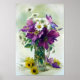 Poster Purple Clematis et White Daisies Imprimer