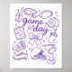 Poster Purple Coquette Bow Cheer Game Day Doodle Touchdow