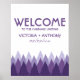 Cette affiche de bienvenue mariage est parfaite pour tout couple qui planifie une fête mariage rustique dans les bois. Le design présente une gamme de forêts ombragées dans les tons violets sur un arrière - plan blanc avec une formulation modifiable coordonnée couleur. Le design simple peut être personnalisé pour votre événement spécial et sera le signe de bienvenue parfait pour toute fête à thème rustique, y compris : douches nuptiales, fiançailles, wedding showers, fêtes d'anniversaire et bien plus encore.