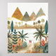 Transformez votre espace avec cette affiche d'art paysager du désert captivante. La scène évocatrice est composée de pyramides anciennes, d'une rivière sinueuse, de palmiers luxuriants et de deux figures qui se baladent le long d'un chemin. Ce spectateur invitation un voyage d'imagination. Un mélange de tons chauds et cool crée une composition visuellement attrayante.