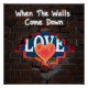 Cette conception capture une métaphore puissante pour révéler une vérité cachée. Il dispose d'un mur patiné en brique avec une ouverture déchiquetée, à travers laquelle un panneau avec le mot "LOVE" est partiellement visible. Le panneau a un style propre et audacieux avec une lumière rouge chaleureuse. L'expression "Quand les murs tombent" est écrite dans un style de graffiti clair sur la brique, symbolisant le moment où nous choisissons de révéler ce qui a été caché.