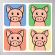 Quatre adorables caricatures de cochon.