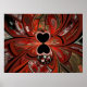 Conception fractale Abstraite ressemblant à un tourbillon de cartes noir, rouge et blanc tourbillonnant avec une paire de coeurs au centre.
