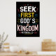 Les mots recherchent le premier royaume des dieux en typographie audacieuse, entourés de symboles et d'illustrations religieux complexes. Quête Divine : Poursuivre le royaume des dieux