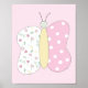 A combination of soft, quilt inspired designs, and a butterfly creates this cute, bedroom wall decor art print. The background is white, while the butterfly consists of white with light shades of green, yellow, and pink. This art print features a signature by me, the artist, and is ideal for a gallery wall.