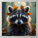 Un adorable raton laveur assis dans une forêt à l'automne couvert d'automne laisse l'art de la muraille des animaux de forêt pour ceux qui aiment les ratons laveurs !