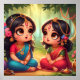 Radha Rani souriant mignon en parlant avec un ami dans la forêt de Vrindavan.
