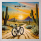 coucher de soleil tableau d'un vélo dans le désert entouré de cactus