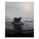 Dans des tons gris doux, la figure d'une femme submergée dans des eaux calmes, ses épaules juste au-dessus de la surface. La partie supérieure de la tête de la femme se dissout dans un nuage de brume, fusionnant harmonieusement avec le ciel couvert. La perte ou la diffusion de l'identité, la nature éphémère des pensées et des émotions. Le soleil brillant, presque flou dans l'arrière - plan contraste avec le premier plan plus sombre, mettant davantage l'accent sur le thème de la contemplation intérieure par rapport à la réalité extérieure.