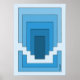 Rectangles et formes rectangulaires dans différentes nuances de bleu forment la base de cette oeuvre abstraite/géométrique originale de Richard H. Fay.