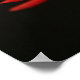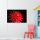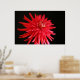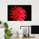 Une affiche d'un magnifique dahlia de cactus rouge vif, à pétales, sur un arrière - plan noir.