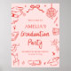 Poster Red Modern Hand Drawn Graduation Party Welcome