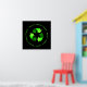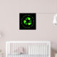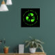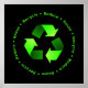Poster noir avec un symbole vert de recyclage entouré de "Réduire - Réutiliser - Recycler" en texte vert extensible.