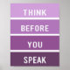 Pensez avant de parler Poster de puces de peinture en violet, 8x10 pouces en impression haute résolution mat. Idéal pour la chambre d'un enfant, la crèche, et la classe préscolaire ou maternelle.