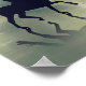 Cette affiche Reflections présente un cheval de dressage en silhouette, cavalier et leur réflexion. Ils roulent dans un orage par un arbre solitaire. *