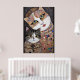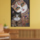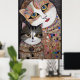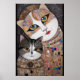 Aspect ratio 3:4 Cette pièce inspirée de Klimt est une synthèse spellliante de portraits de chat et de travail complexe en mosaïque. Deux figures de félin, rendues avec un contraste saisissant, sont dressées contre une riche tapisserie de carreaux de mosaïque brillants et texturés. Les yeux fascinants des chats semblent tenir une galaxie d'histoires, tandis que leurs colliers ornés suggèrent un roulement presque royal. Cette oeuvre est une célébration de la mystique et de la grandeur des chats, imaginés à travers un kaléidoscope de carreaux chatoyants et de couleurs audacieuses.