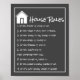 Au sommet, il y a une maison. Le texte affiché à côté de la maison dit "Règles de la maison" Sous eux sont 9 règles : 1. Si tu le laisses tomber, prends-le. 2. Si vous le retirez, remettez-le 3. Si vous l'allumez, éteignez-le. 4. Si vous l'ouvrez, fermez-le. 5. Si vous le cassez, réparez-le. 6. Si vous ne pouvez pas le réparer, trouvez quelqu'un qui le peut. 7. Si tu l'as souillé, lave-le. 8. Si vous faites un gâchis, nettoyez-le. 9. Si ce n'est pas le vôtre, laissez-le tranquille.