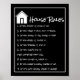 Au sommet, il y a une maison. Le texte affiché à côté de la maison dit "Règles de la maison" Sous eux sont 9 règles : 1. Si tu le laisses tomber, prends-le. 2. Si vous le retirez, remettez-le 3. Si vous l'allumez, éteignez-le. 4. Si vous l'ouvrez, fermez-le. 5. Si vous le cassez, réparez-le. 6. Si vous ne pouvez pas le réparer, trouvez quelqu'un qui le peut. 7. Si tu l'as souillé, lave-le. 8. Si vous faites un gâchis, nettoyez-le. 9. Si ce n'est pas le vôtre, laissez-le tranquille.