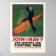 Poster de la Première Guerre mondiale vintage "Join The Navy ~ The Service For Fighting Men" de Richard Fayerweather Babcock, 1917, souhaite une illustration humoristique d'un marin qui monte une torpille.