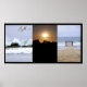 Trois images différentes de la nature, vagues de l'océan, coucher du soleil, oiseaux volant et chemin de marche pour voir l'océan.