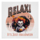 Cool et éffrayant garçon/fille comme un clown déplaisant entouré de leurs lanternes à l'allure déplaisante. Célébrez Halloween avec ce design rétro sur le thème de l'horreur d'un sombre clown, citrouille et jack-o-lanterns prêt pour le tour ou le traitement. Le texte "Relax ! C’est juste Halloween" est écrit dans une police orange et orange noire avec une texture en mauvais état. Ce design graphique d'Halloween est parfait pour tous ceux qui veulent montrer leur amour pour tout Halloween. 🤡 🎃 👻