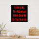 Vous cherchez un moyen rapide et facile d'expliquer votre objection à la religion? De grandes lettres rouges proclament que "la foi est au religieux ce que le sable est à l'autruche". Bonne façon de faire savoir aux autres que vous n'avez pas besoin d'amis imaginaires vous disant quoi penser.