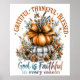 Design paisible et coloré avec une belle scène automne/automne avec un citrouille, et des fleurs. Le texte inspirant et coloré dit : "Heureux reconnaissant béni. Dieu est fidèle à chaque saison". Ce design est disponible sur une grande variété de produits.