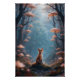 Photoréaliste, représentation haute définition d'un renard solitaire, stylisé, à la fourrure subtilement modelée et doucement brillante, assis paisiblement dans une forêt onirique, brumeuse. La forêt présente des arbres inhabituellement colorés et sans marque et des champignons doucement luminescents, avec une lumière diffuse et magique qui filtre à travers la canopée. Un avant-plan flou ou un carré clair de plancher forestier offre de l'espace pour les éléments de texte ou de conception. La scène évoque la sérénité, la réflexion spirituelle et l'ambiance mystique.
