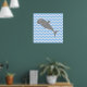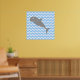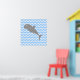Dessin d'un requin gris avec un arrière - plan motif en zigzag bleu clair et blanc.
