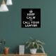 Gardez le calme et appelez votre avocat - conseils judicieux pour la plupart des situations! Dans le style du célèbre poster Keep Calm and Carry On.