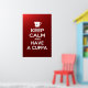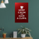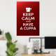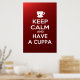 Une affiche avec une variation de Keep Calm et Carry On, Keep Calm et Have a Cuppa en blanc texte et brillant arrière - plan rouge