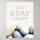 Une affiche élégante et inspirante avec une photo impressionnante d'empreintes de galets multicolores et les mots typographiquement "Quoi qu'il arrive, restez calme !". Un design original disponible exclusivement chez ©GardenEden online store.Tous droits réservés à la photo, au design et au libellé.
