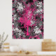 Moderne et élégante œuvre d'art murale abstraite à motif floral noir.