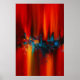 Une ville s'embrase dans le silence. Ember Skyline capture l'instant entre le crépuscule et la détonation - où des traînées verticales de cramoisi et d'orange en fusion s'élèvent comme des flammes sur un fond de bleu qui s'intensifie. La moitié inférieure scintille de reflets épars : turquoise, cobalt et éclats de lumière qui suggèrent des fenêtres lointaines, des pulsations néon ou des souvenirs se dissolvant dans la nuit.