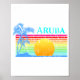 Une plage rétro classique d'un coucher de soleil sur l'océan et de palmiers pour les îles Aruba. Un cadeau génial pour tous les vacances caribéennes.