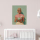 Entrez dans un moment ensoleillé au charme intemporel avec cette oeuvre d'inspiration vintage. Une femme au pois, habillée d'une manière du milieu du siècle avec un chemisier rose rose, en vichy jupe et collier de perles, se dresse contre un mur turquoise pastel. Ses boucles blondes classiques et ses lunettes de soleil pour chat font écho à l'élégance des années 1950. Elle tient une théière verte à la menthe et une tasse de thé appétissante, suggérant un thé de l'après-midi imprégné de glamour rétro. Cette image capture la grâce et le raffinement d'une époque révolue, parfait pour les amateurs de style vintage, de mode rétro et de décoration nostalgique. Idéal pour les imprimés, les affiches et les accessoires de style de vie, cette pièce apporte une ambiance chaleureuse et élégante à tout espace ou produit. Que ce soit pour la conception d'articles de cuisine, de déco maison ou de papeterie élégante, ce design évoque un raffinement calme et un charme gai.