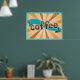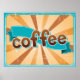 Poster Retro Coffee Typography Teal Brown Sunburst