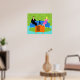 Ce Retro Couple with Cat Poster propose un couple de dessins animés qui essaie de se sentir à l'aise tout en regardant la télévision sur un canapé bleu moderne du milieu du siècle. Le chat, cependant, a d'autres idées. D'un côté du canapé, un beau homme en costume noir avec cravate rouge. De l'autre côté du canapé design, il y a une belle femme blonde en forme de robe rose chaude. Les choses se passeraient bien si ce n'était le chat noir élégant, qui a revendiqué le coussin du canapé central. Ce design minimaliste de style années 60 est installé dans un élégant salon. La toile de fond du canapé est un mur vert en pierre. Au niveau de l'aqua se trouve un tapis rond et vert en forme de marais qui s'accorde avec le mur en pierre. A l'avant-garde du design, on voit l'arrière d'une télévision orange avec des oreilles de lapin, qui semble jouer le programme TV préféré du chat.